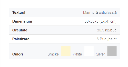Capitelurile ROMA sunt colorate în masă astfel nefiind necesară vopsirea lor. Ele sunt disponibile în trei variații de culori și șapte dimensiuni.